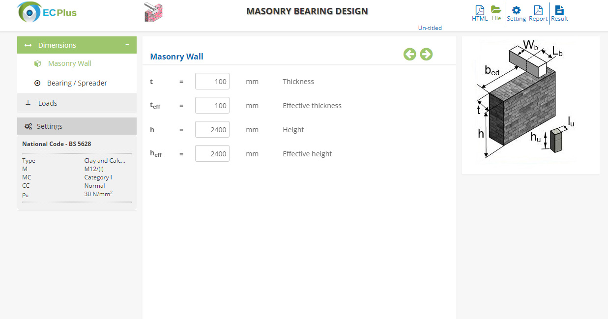 The Masonry modules has following applictions as per BS code.